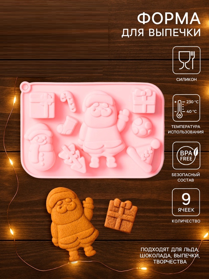 Купить Форма для выпечки Новый год, 17.5×12×2.5 см, 9 ячеек, силикон, розовая S7559 по лучшей цене с доставкой - интернет магазин №1 в России