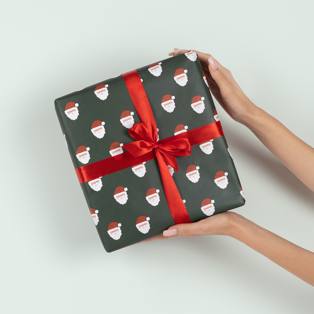 Упаковочная бумага Дед Мороз, зеленый, 0,7*1м