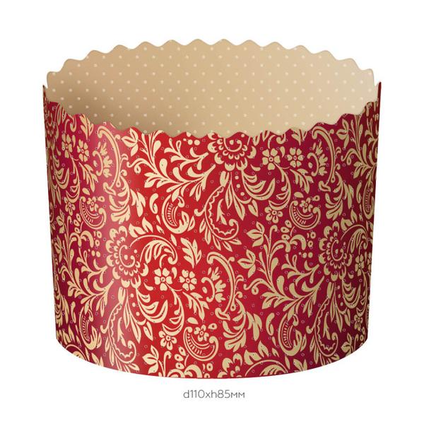 Форма бумажная для кулича Флора красная, 110*85мм, 5шт