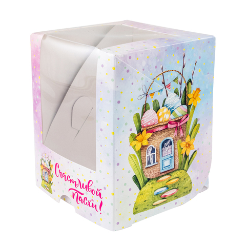 Купить Коробка для мини кулича с окном Пасхальный домик, 9,5*9,5*12 см S8741 по лучшей цене с доставкой - интернет магазин №1 в России