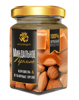 Состав: Перетертый в пасту отборный миндаль обжаренный 70%, карамель 30%.