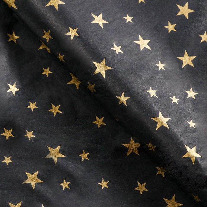 Бумага упаковочная тишью, Звезды на черном, 50 х 66 см, 1 лист