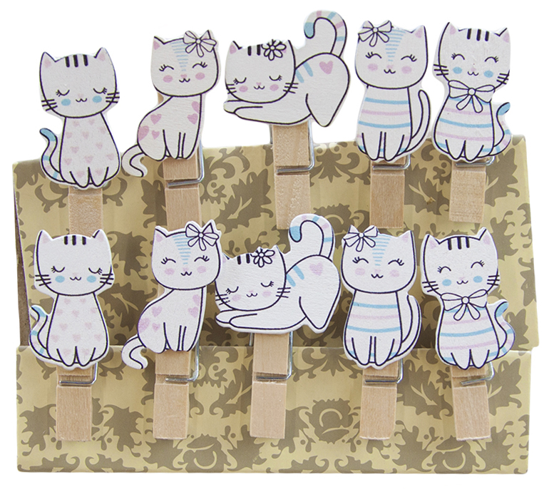 Декоративные мини прищепки Кошечки, 3,5 см, ассорти, 10 шт