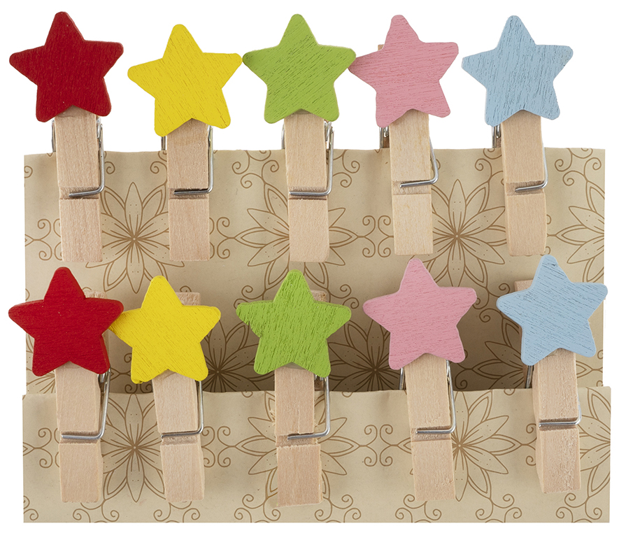 Декоративные мини прищепки Звездочки, 3,5 см, ассорти, 10 шт