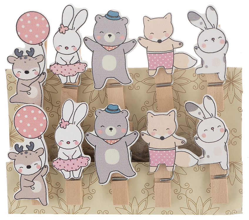 Декоративные прищепки, Веселые зверята, 3,5 см, Ассорти, 10 шт