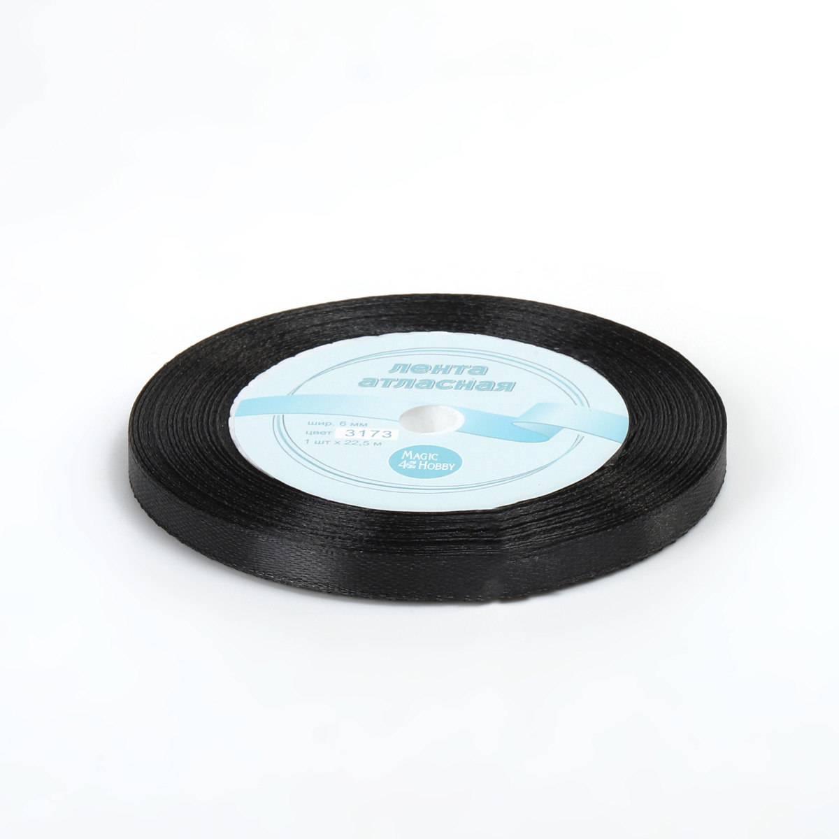 Лента атласная Черный 6мм, 22 метра за 95 ₽ - купить в Москве оптом и в розницу.