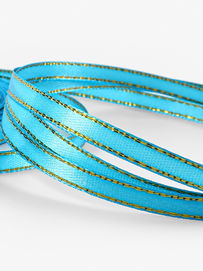 Лента атласная, с золотым люрексом, 6 мм, 22 м, голубая за 95 ₽ - купить в Москве оптом и в розницу.