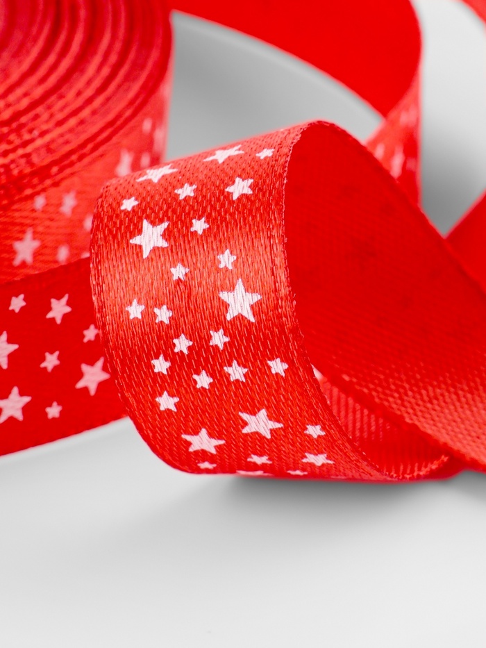 Лента атласная Звёзды, 15 мм, 23±1 м, Красная за 165 ₽ - купить в Москве оптом и в розницу.