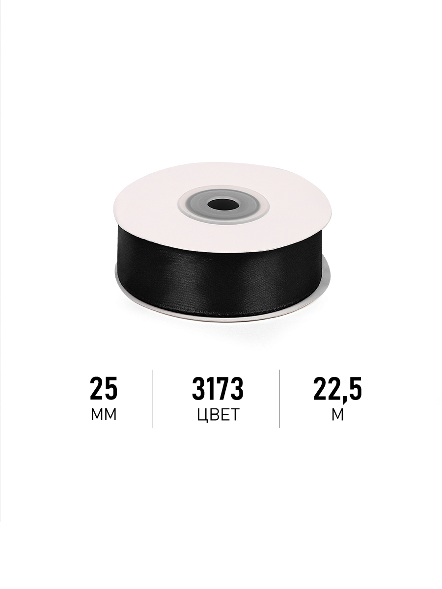 Лента атласная Черная 2,5см, 22,5 метра за 195 ₽ - купить в Москве оптом и в розницу.