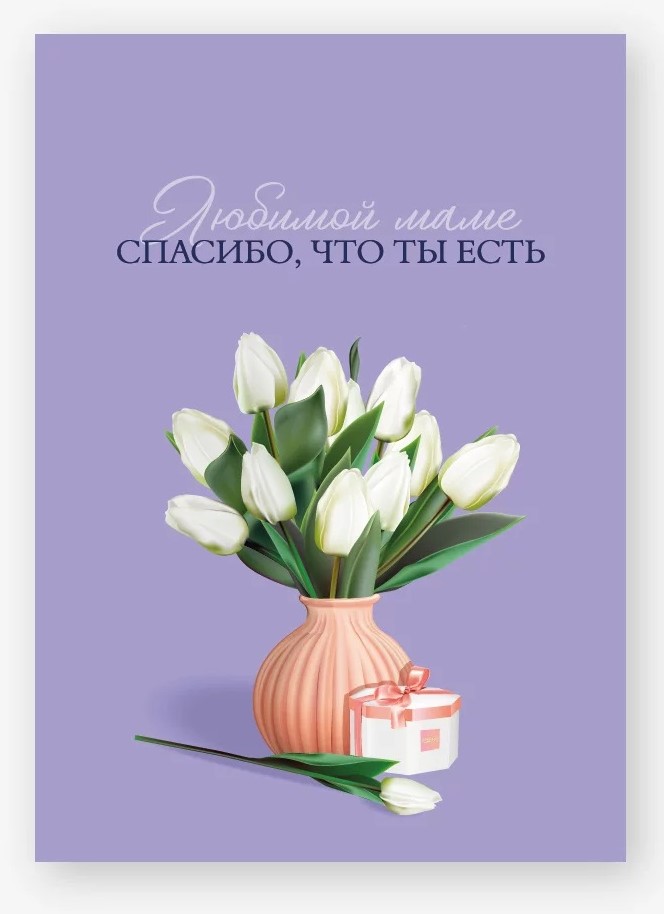 Бирка для оформления, Любимой Маме (белые тюльпаны), Сиреневый, 5*7 см, 10 шт за 85 ₽ - купить в Москве оптом и в розницу.