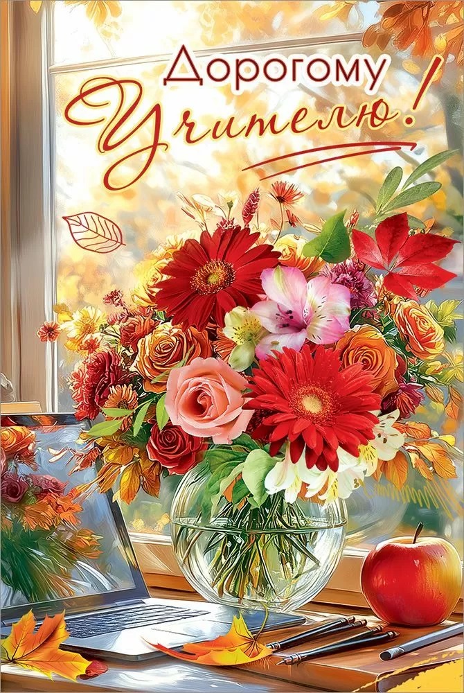 Открытка Дорогому Учителю! (цветы в вазе) 12,2*18,2см за 95 ₽ - купить в Москве оптом и в розницу.