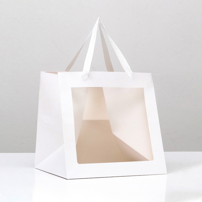 Пакет подарочный КУБ с окном 30*30*30см, белый за 195 ₽ - купить в Москве оптом и в розницу.