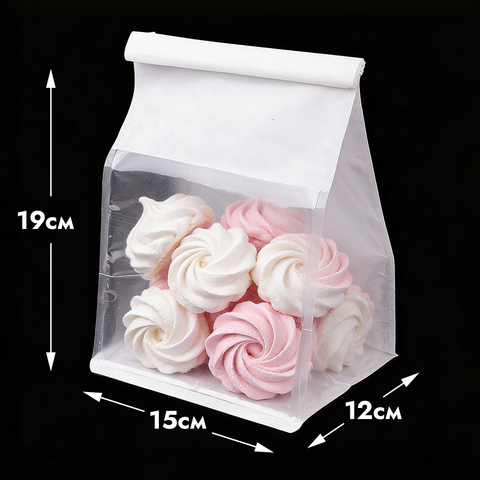 Пакет с прямоугольным дном 15*19*12 см с окном и зажимом, белый за 34 ₽ - купить в Москве оптом и в розницу.