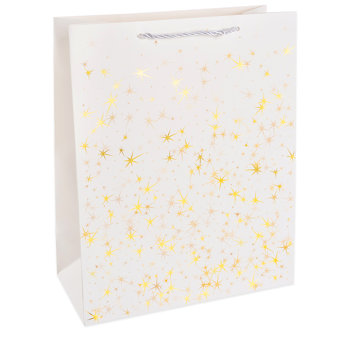 Пакет подарочный Тысячи созвездий, Белый/Золото, 32*26*12см, металлик