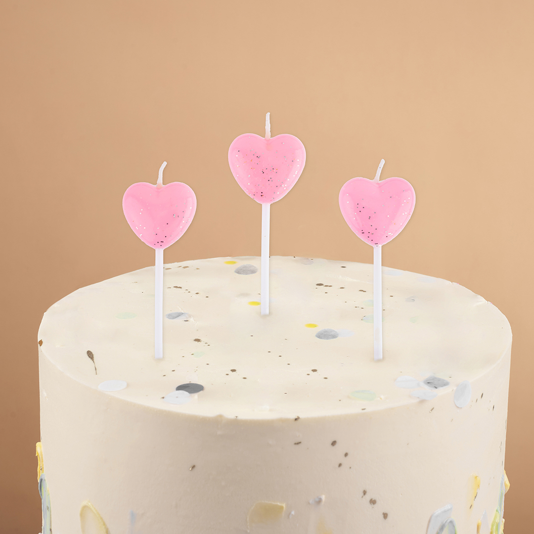 Свеча для торта Сердце, розовый с блестками, 5шт с держателем за 235 ₽ - купить в Москве оптом и в розницу.