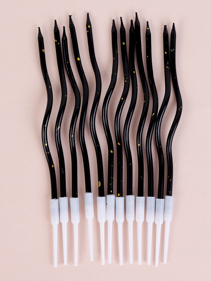 Свечи для торта "Серпантин", 12 шт, черный с блёстками