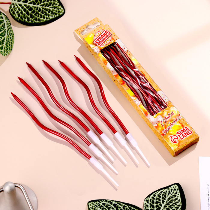 Свечи для торта витые "Серпантин" 6 шт, рубиновые за 95 ₽ - купить в Москве оптом и в розницу.