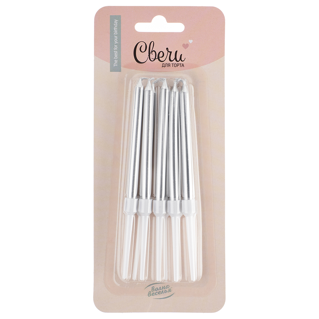 Свечи для торта Серебро, Металлик, 0,6*8см, 10 шт за 185 ₽ - купить в Москве оптом и в розницу.