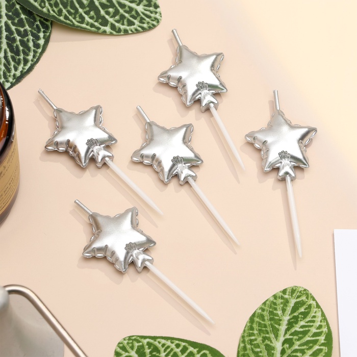 Свечи для торта. 5 шт "Воздушный шарик. Звезда". Серебряные за 195 ₽ - купить в Москве оптом и в розницу.