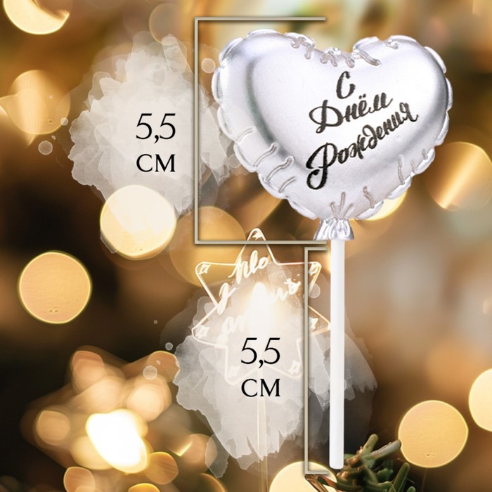 Свеча для торта "Воздушный шарик. Сердечко", 5,5 см. серебро за 185 ₽ - купить в Москве оптом и в розницу.