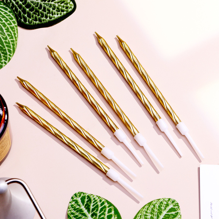 Свечи в торт "Металлик" , 14см, 6шт с подставкой за 95 ₽ - купить в Москве оптом и в розницу.