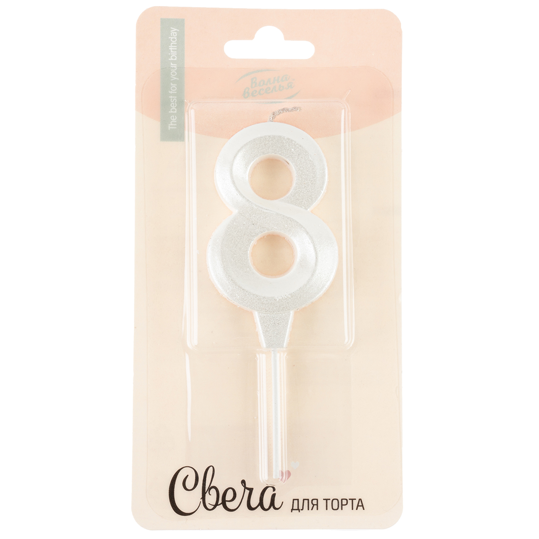 Свеча Цифра, 8 Грани, на шпажке, Жемчужный, Перламутр, 3,5*6,5 + 3,5 см за 95 ₽ - купить в Москве оптом и в розницу.