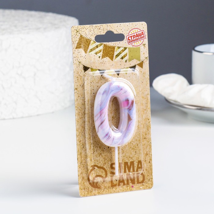 Свеча для торта "Белый мрамор", цифра "0", 5,5 см за 95 ₽ - купить в Москве оптом и в розницу.