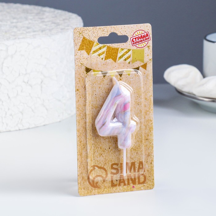 Свеча для торта "Белый мрамор", цифра "4", 5,5 см за 95 ₽ - купить в Москве оптом и в розницу.