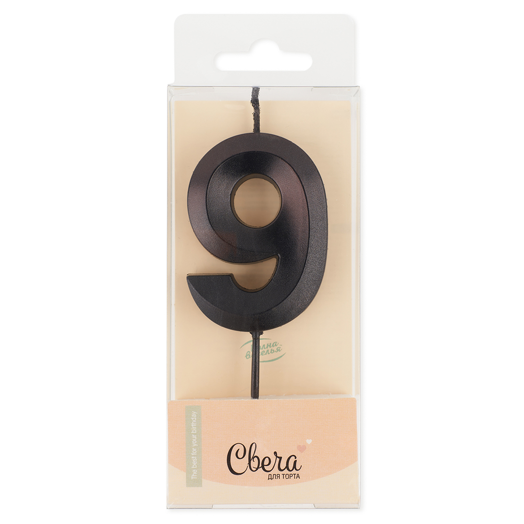 Свеча Цифра, 9 Грани, Черный, Металлик, 6см + 4,5 см за 115 ₽ - купить в Москве оптом и в розницу.