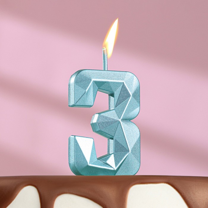 Свеча для торта «Алмаз», цифра "3", голубая, 5 см за 85 ₽ - купить в Москве оптом и в розницу.