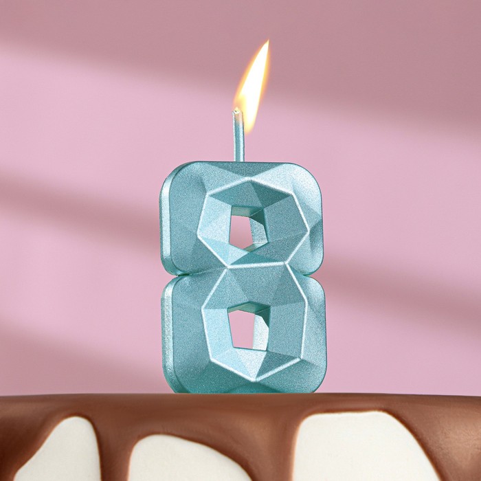 Свеча для торта «Алмаз», цифра "8", голубая, 5 см