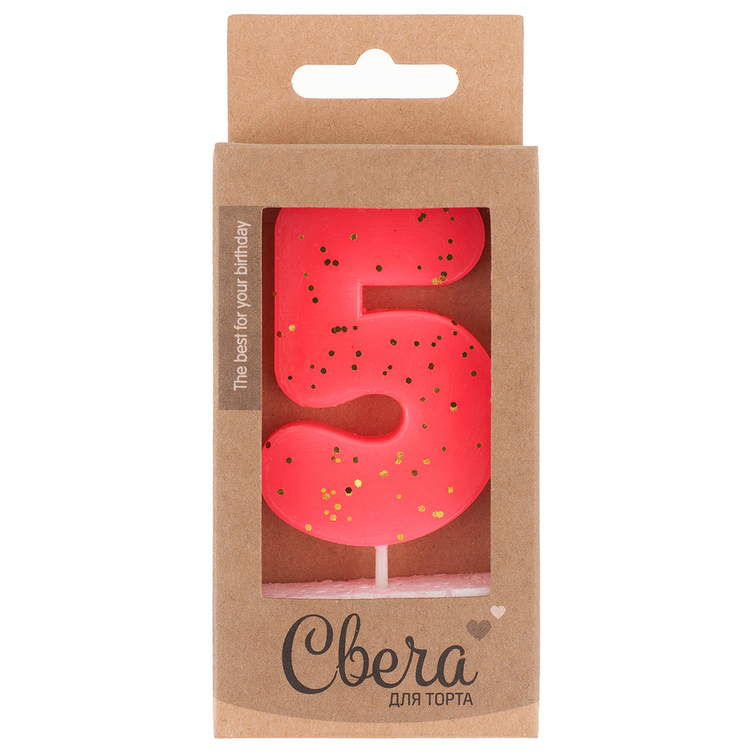 Свеча для торта цифра 5 НЕОН, ярко-розовый с блестками, 4*6см за 95 ₽ - купить в Москве оптом и в розницу.