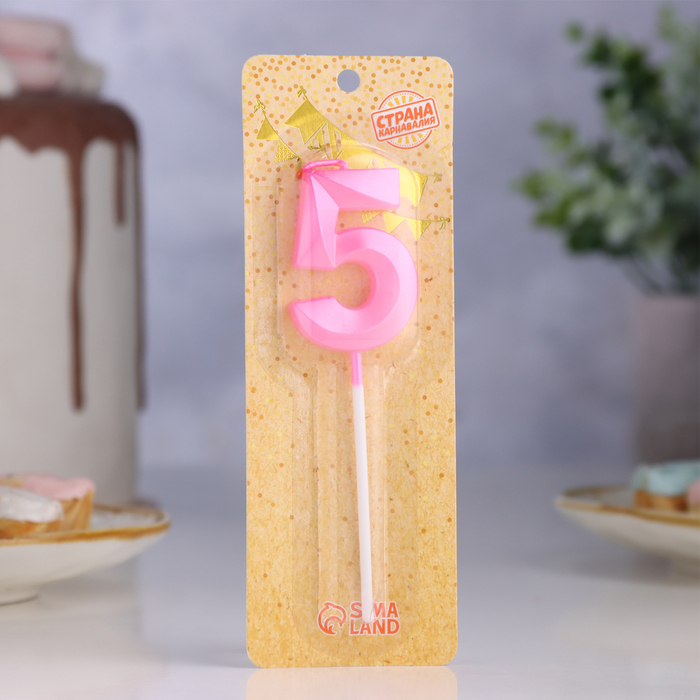 Свеча на шпажке «Грань», цифра "5", 5 см, розовая за 85 ₽ - купить в Москве оптом и в розницу.