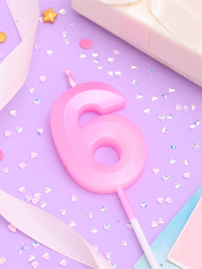 Свеча на шпажке «Грань», цифра "6", 5 см, розовая за 85 ₽ - купить в Москве оптом и в розницу.