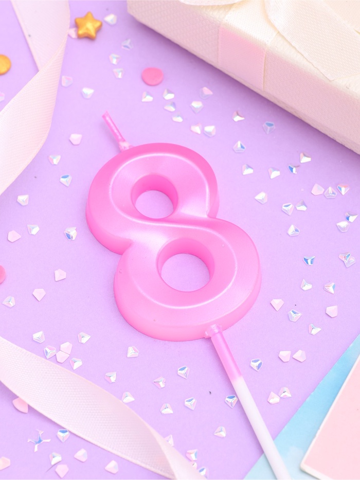 Свеча на шпажке «Грань», цифра "8", 5 см, розовая за 85 ₽ - купить в Москве оптом и в розницу.