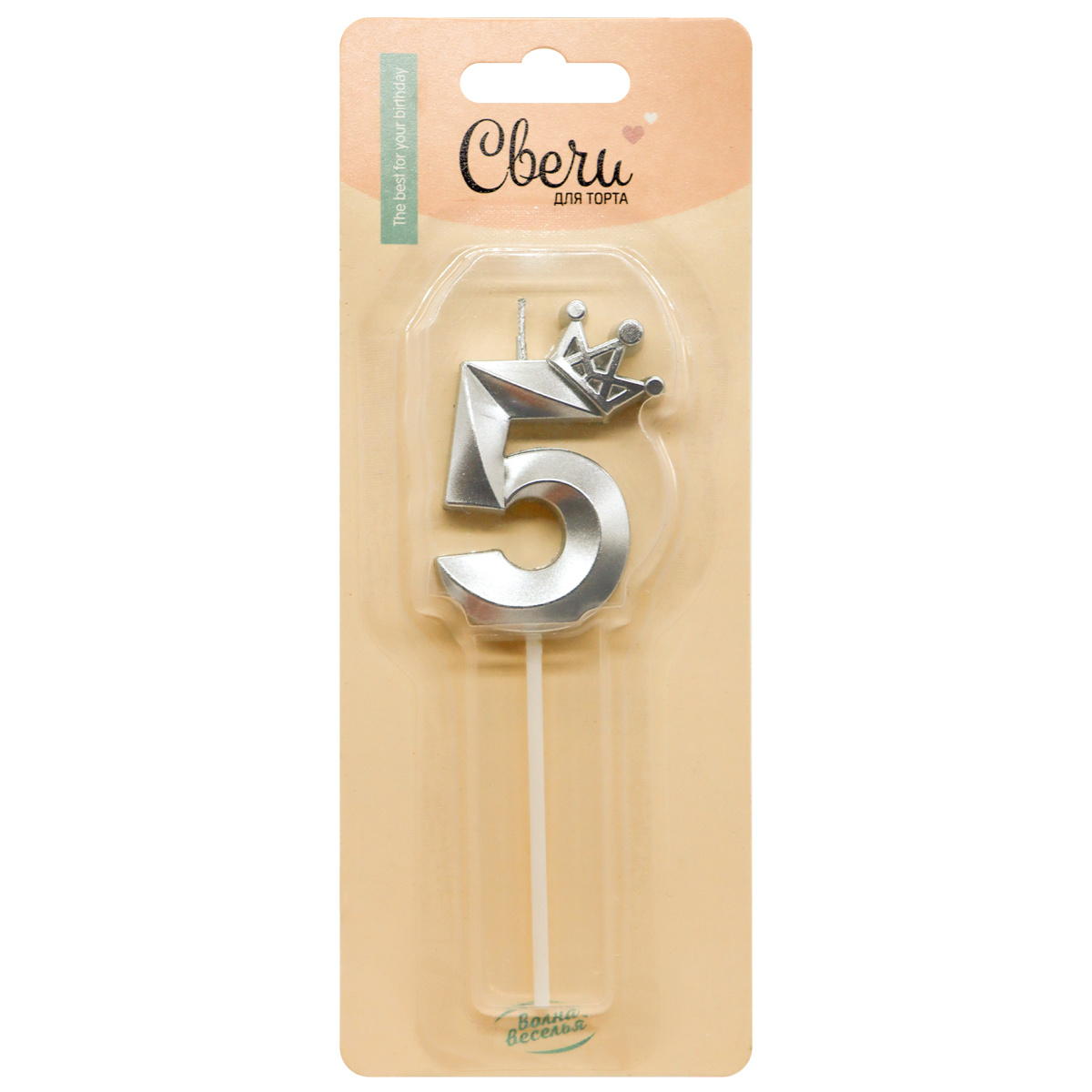 Свеча для торта Корона на шпажке цифра 5, Серебро, 6см, металлик за 95 ₽ - купить в Москве оптом и в розницу.