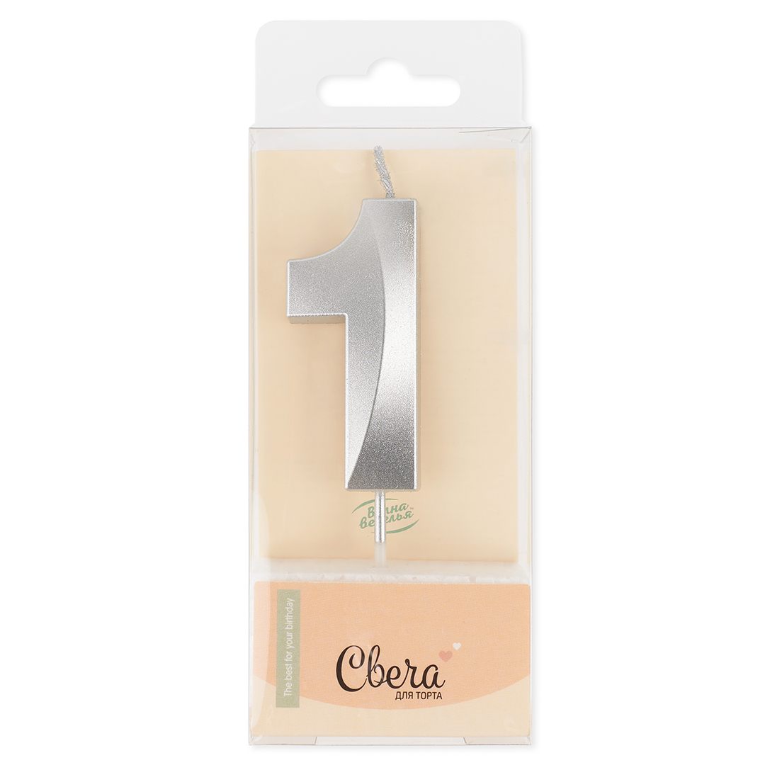 Свеча Цифра, 1 Грани, Серебро, Металлик, 4,2*6 + 4,5 см за 115 ₽ - купить в Москве оптом и в розницу.