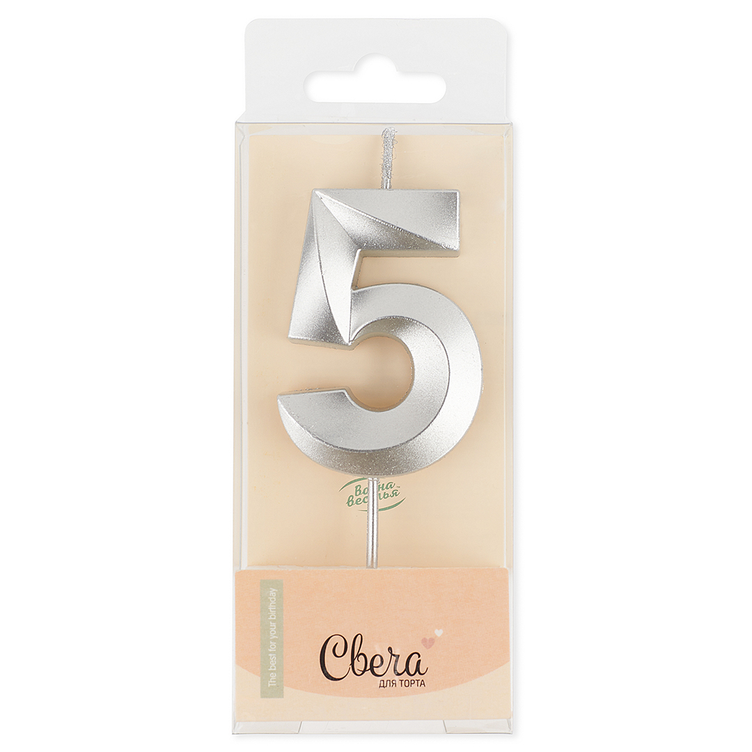 Свеча Цифра, 5 Грани, Серебро, Металлик, 4,2*6 + 4,5 см за 115 ₽ - купить в Москве оптом и в розницу.