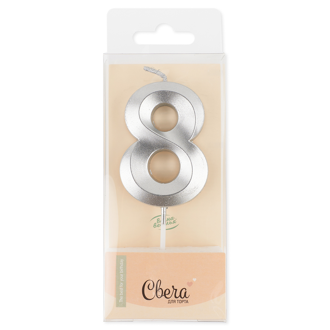 Свеча Цифра, 8 Грани, Серебро, Металлик, 4,2*6 + 4,5 см за 115 ₽ - купить в Москве оптом и в розницу.
