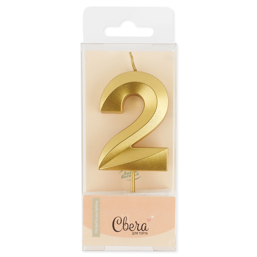 Свеча для торта Грани, цифра 2, золото, 6,5см за 115 ₽ - купить в Москве оптом и в розницу.