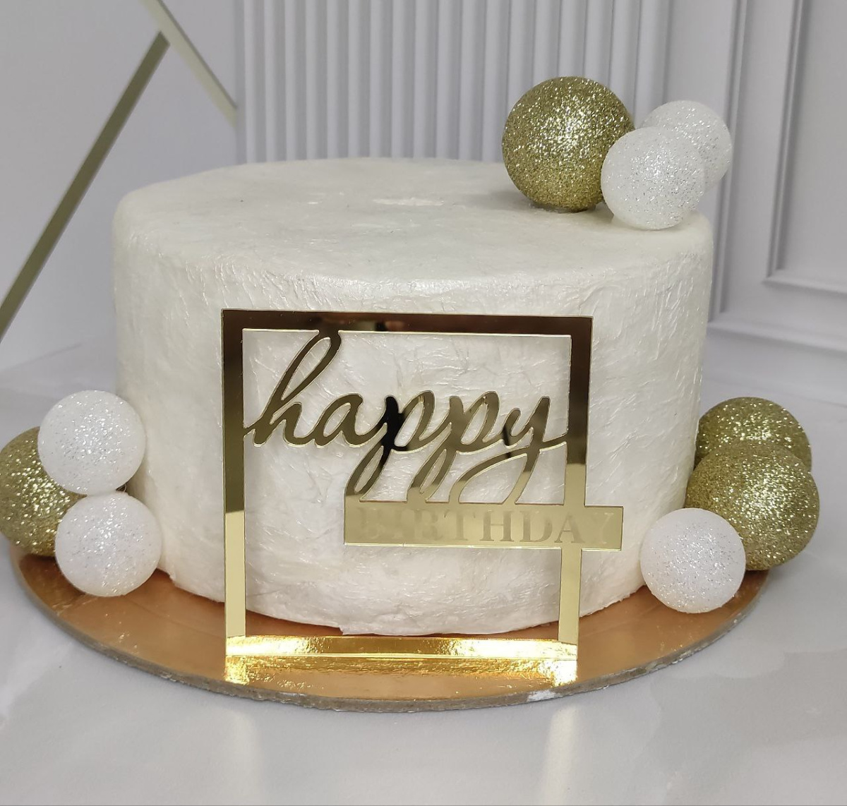Топпер торцевой Happy Birthday, квадрат, 9*9см, золото за 95 ₽ - купить в Москве оптом и в розницу.