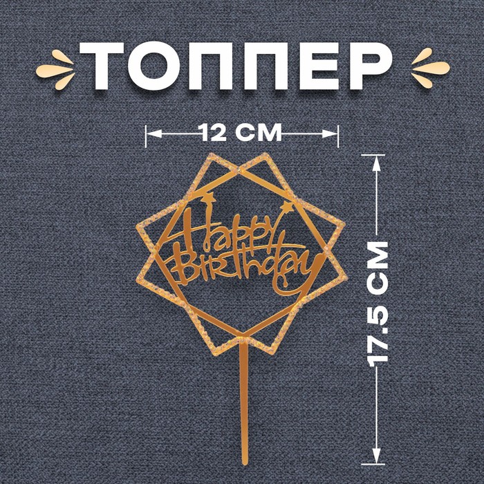 Топпер С Днем Рождения со стразами, золото за 95 ₽ - купить в Москве оптом и в розницу.