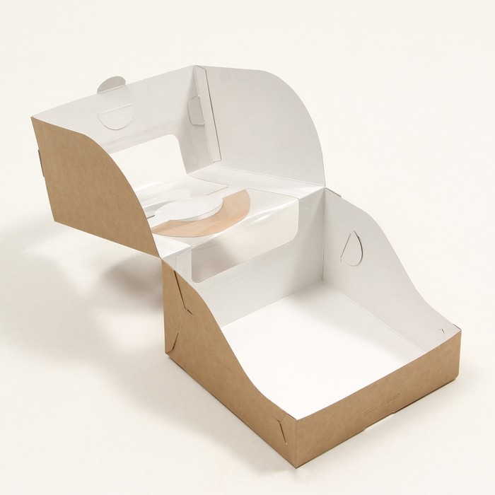 Коробка под бенто-торт с окном, крафт, 14 х 14 х 8 см за 65 ₽ - купить в Москве оптом и в розницу.