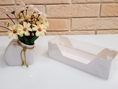 Коробка для макарун 18,5*5,5*5см, пластиковая крышка, белая