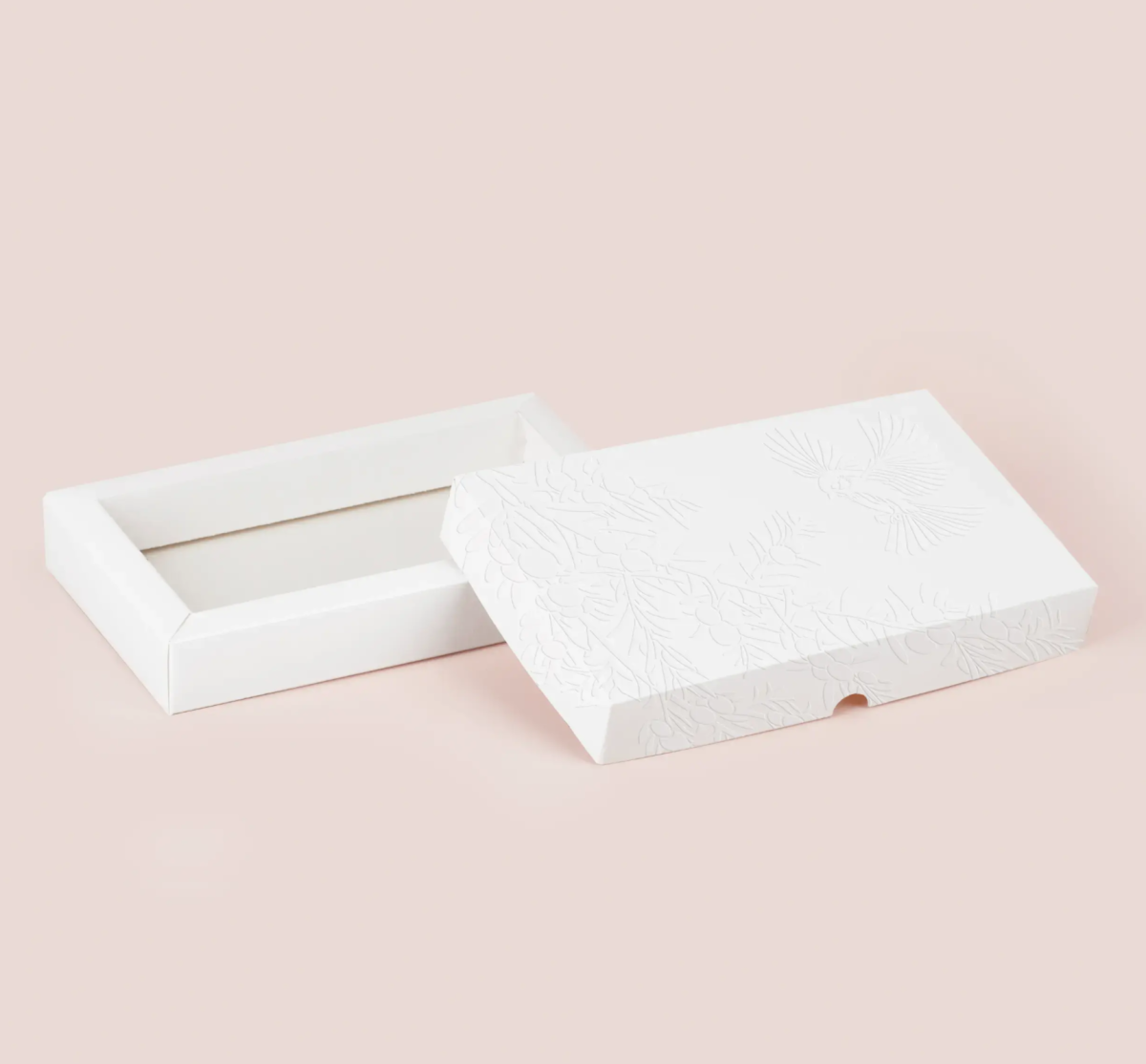 Коробка для печенья белая с тиснением, 20*12*3см за 75 ₽ - купить в Москве оптом и в розницу.