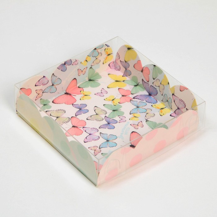 Коробка для печенья с PVC крышкой, «Бабочки», 10.5 х 10.5 х 3 см за 35 ₽ - купить в Москве оптом и в розницу.
