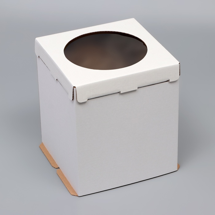 Коробка для торта 50x50x50, с окном Круг, белая за 420 ₽ - купить в Москве оптом и в розницу.