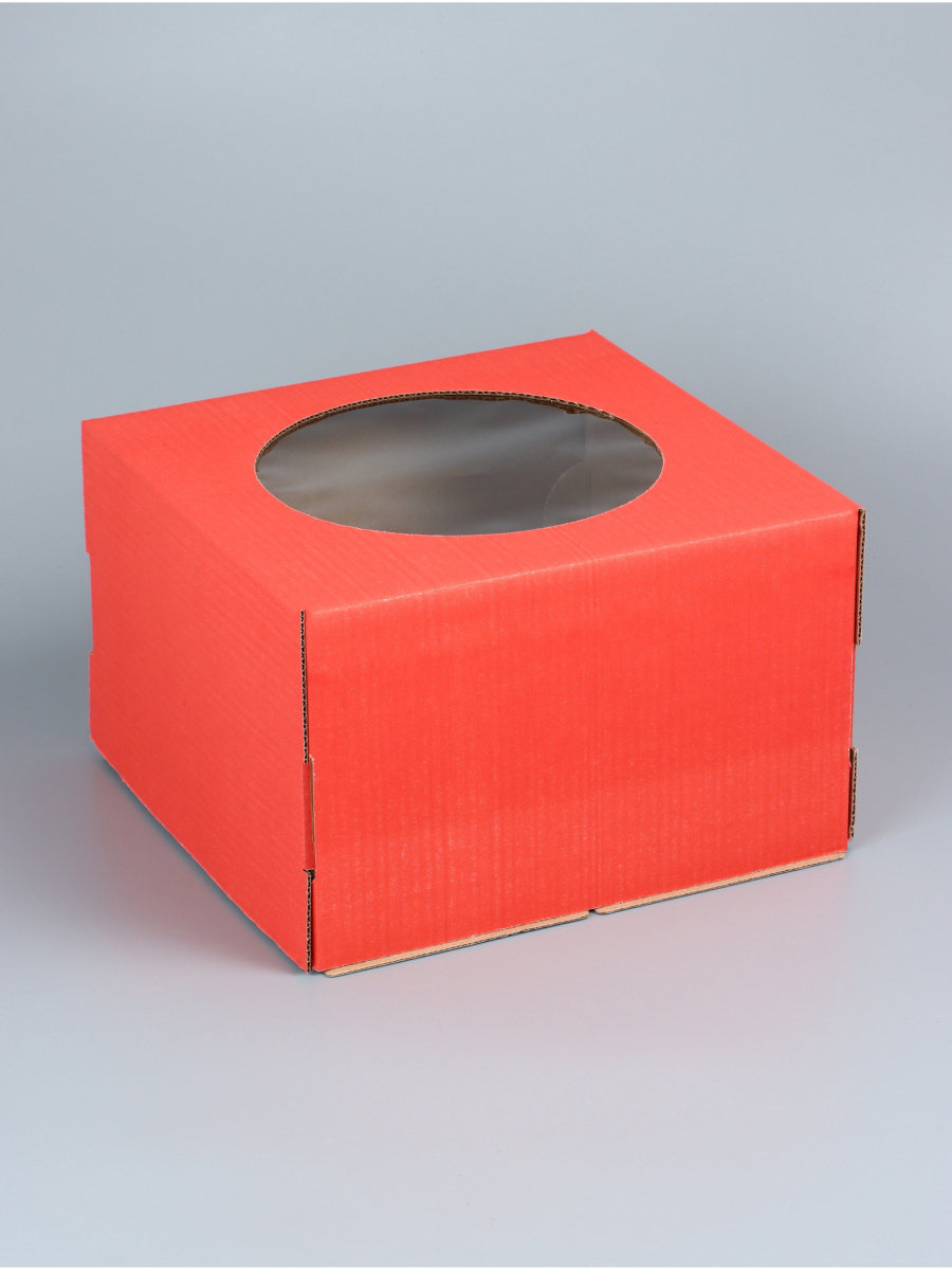 Коробка для торта 30x30x19 см, с окном, красный за 125 ₽ - купить в Москве оптом и в розницу.