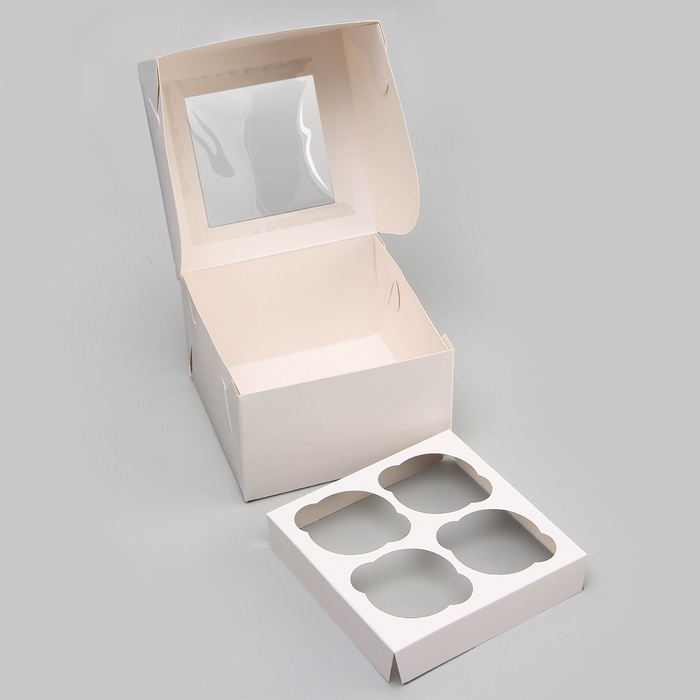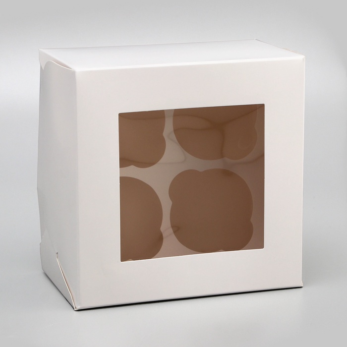 Коробка для 4 капкейка с окном, белая, 16 х 16 х 10 см за 70 ₽ - купить в Москве оптом и в розницу.