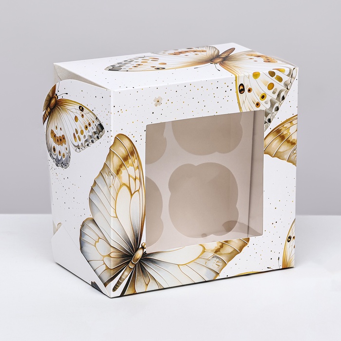 Коробка для 4 капкейков с окном , «Бабочки», 16×16×10 см за 75 ₽ - купить в Москве оптом и в розницу.